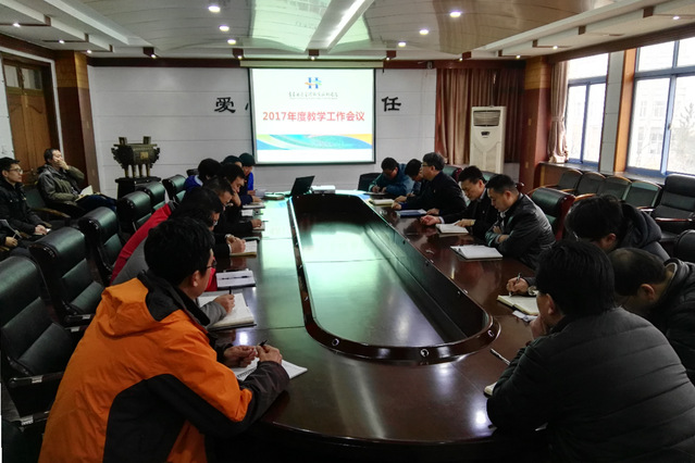 本网讯 (教务处 车延年) 12月15日上午,学院在办公楼二楼会议室召开2017年度教学工作会议。学院院长姜玉鹏、副院长刁洪斌、副院长宫恩龙出席本次会议,教务处及二级院部负责人、办公室主任参加了会议。
