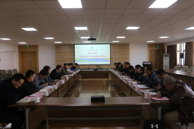 本网讯 (党政办公室) 12月19日下午,河源职业技术学院院长陈德清等一行11人到我院交流访问,考察学习我院数字化校园建设、信息化教学、在线教育平台建设、教学质量诊断与改进等方面的相关经验,我院院长姜玉鹏、相关部门负责人在办公楼四楼会议室与来访客人进行了座谈交流。
