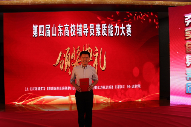 本网讯(学生工作处 孙毅)5月12日—13日,由中共山东省委高校工委、教育部高校辅导员培训和研修基地(山东大学)主办,山东高校辅导员工作研究及培训基地(山东建筑大学)承办的第四届山东高校辅导员素质能力大赛在济南举行。我院艺术学院辅导员于友鹏在比赛中沉着应战、发挥稳定,获得一等奖。我院也成为近三届比赛中全省唯一一所蝉联本项赛事一等奖的高职院校。