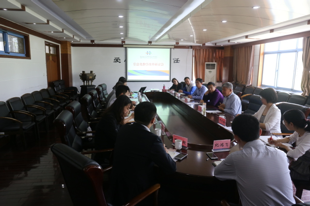 本网讯(教务处)为进一步推动优质校建设工作,提高学院信息化教育教学水平,近日,学院在办公楼二楼会议室召开信息化教学改革研讨会,特邀山东大学信息化办公室主任、博士生导师葛连升教授来我院指导信息化教学改革工作。学院党委书记李达出席本次会议,教育信息中心主任罗冬梅、教务处处长唐文君、旅游管理和物业管理专业负责人及骨干教师、教务处相关人员参会。
