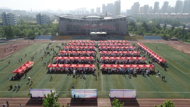 本网讯(招生就业办公室 张承业)5月24日,我院2018年春季综合类校园供需见面会在学院体育场举办。供需见面会邀请到了海尔集团、库特智能、万科物业、鲁南制药、兴业银行、光大银行、鲁商凯悦酒店、香格里拉大酒店等330家企事业单位参会,为我院学生提供了9000多个工作岗位。