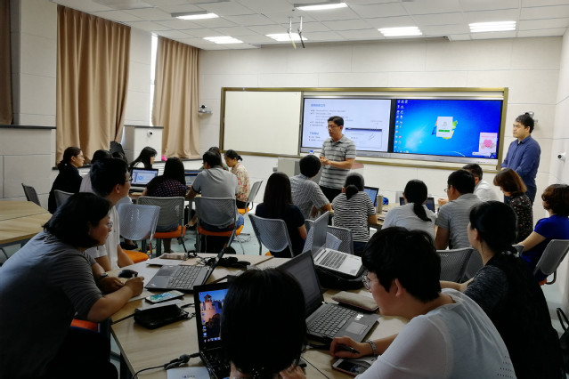 李迪详细讲解了“雨课堂”在混合式教学过程中的应用,并带领老师进行了实战演练。参加培训的老师纷纷表示很喜欢这款基于PPT和微信的小工具,它能够为课堂增添更多色彩,达到更好的教学效果。