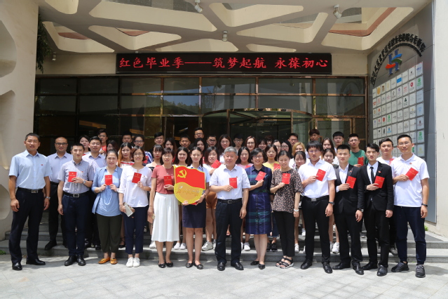 李达向全体毕业生党员赠送党章,他嘱托毕业生党员要做到“心中有信仰、做人有担当、成长有韧性”。他指出,历史洪流,大浪淘沙,唯有信仰坚定者,永垂不朽,不忘初心者,走的最远;每个时代的人有属于自己时代的担当,愿即将踏入社会的同学做一个敢于承担责任,敢于担当的人;人生不如意十有八九,做一个有韧性的人,坦然面对困难、接受困难、勇于解决困难。