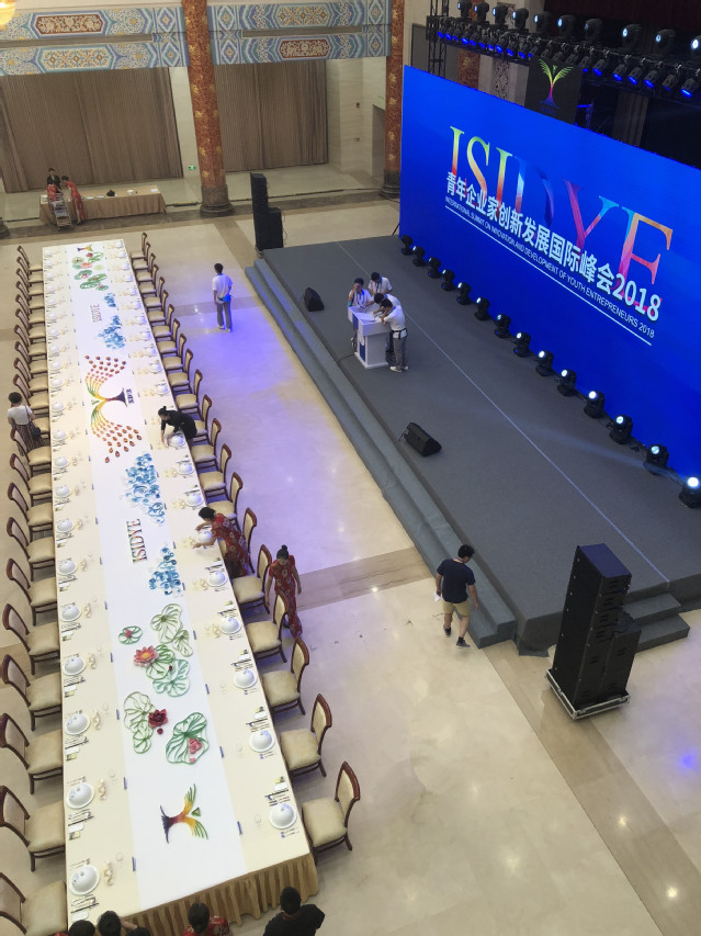 本网讯(团委 张素愚)近日,由共青团中央、国务院发展研究中心、山东省人民政府指导的“青年企业家创新发展国际峰会2018”在济南举行,受团省委委托,我院师生历时16天,顺利完成本次峰会欢迎晚宴的主桌设计及美陈工作。省委书记刘家义、省长龚正等领导出席峰会并参加多项活动,1500多名青年名士、专家学者、商界翘楚相聚泉城,共谋发展。