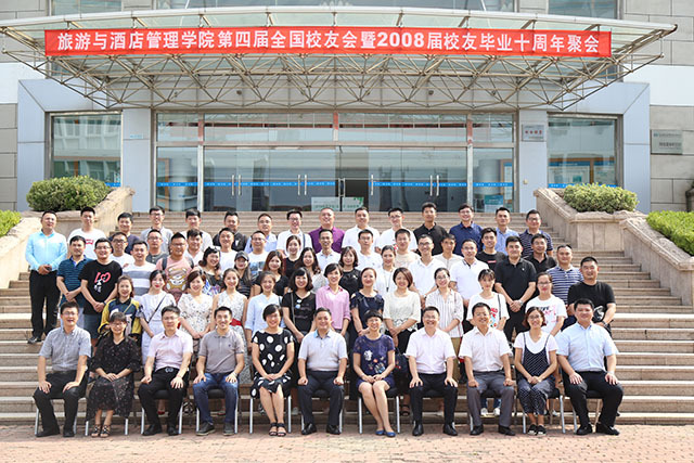 本网讯(旅游与酒店管理学院 李涛)9月1日,旅游与酒店管理学院第四届全国校友会暨2008届校友毕业十周年聚会在实训中心举行,来自全国20多个省市自治区的60余名校友齐聚母校,共叙同窗之谊、同谋发展大计,并向学院捐赠“师恩难忘”石雕。学院副院长刁洪斌、招生就业办公室主任冷雪艳、旅游与酒店管理学院党总支副书记徐莉、副院长石媚山,以及2008届所有辅导员老师参加活动。