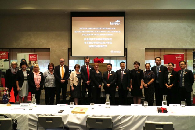 本网讯(国际交流与合作处 邵常恩)11月27日至30日,学院副院长刁洪斌一行前往澳大利亚进行访问交流,出席澳大利亚南澳技术与继续教育学院(TAFE SA)姐妹校区揭牌仪式,参加中外合作办学研讨会,访问参观威廉·安格力斯学院,看望我院在澳培训教师。