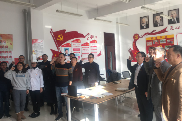 王建明同志为本次过党员政治生日的同志颁发“生日贺卡”同时感谢各位同志的辛勤付出并鼓励大家继续努力奋斗。烹饪学院全体党员面朝党旗重温入党誓词,以达到“不忘初心、牢记党恩”的要求。本次过政治生日的党员代表孙寅勇同志结合自身经历与大家分享“我与党”的故事,他表示作为一名党员教师在日常工作中要敢于亮身份,勇于做先锋,时时事事都要起到模范带头作用,这样才能达到一名合格党员教师的标准。同志们还通过网络以及“烹饪党建在线”微信公众号学习观看《习近平新时代中国特色社会主义思想三十讲》,不断创新党建学习的新思路、新方法。