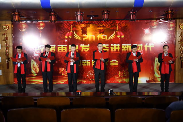 联欢会以《春到福来》歌舞开场,融入歌曲、舞蹈、太极拳、情景剧、诗朗诵、服装展示等多种艺术形态,迎接2019年的到来,向改革开放40年献礼。朗诵《辉煌这一年》、搏击操啦啦操《2019重拳出击》、太极拳表演 、服装展示《艺Show》、歌曲《我的小宝贝》、歌曲串烧《回忆青春》、情景剧《匠心》等精彩纷呈的节目轮番登场,联欢会在《我们的新时代》的歌舞表演中落下帷幕。