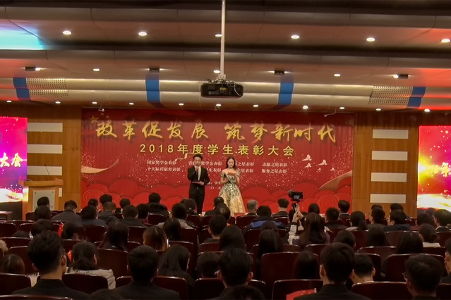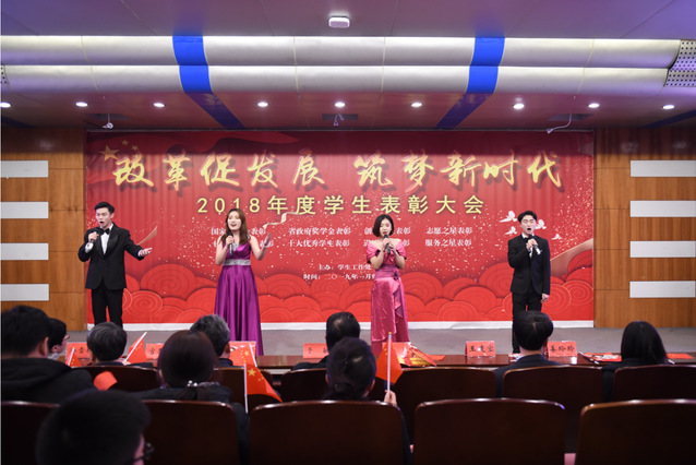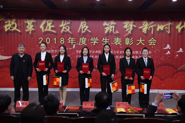 李达等与会领导分别为2018年度获得国家奖学金、省政府奖学金、十大优秀学生、“创新之星”“志愿之星”“自强之星”“道德之星”、十大优秀宿舍的同学颁奖。