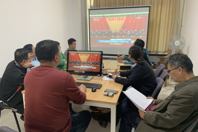 本网讯(思想政治教学部 宋洋)5月7日中午,思政部全体党员教师召开习近平总书记在纪念五四运动100周年大会上的讲话精神专题学习会,思政部副主任刘刚带领老师们观看了讲话视频、学习了讲话全文。