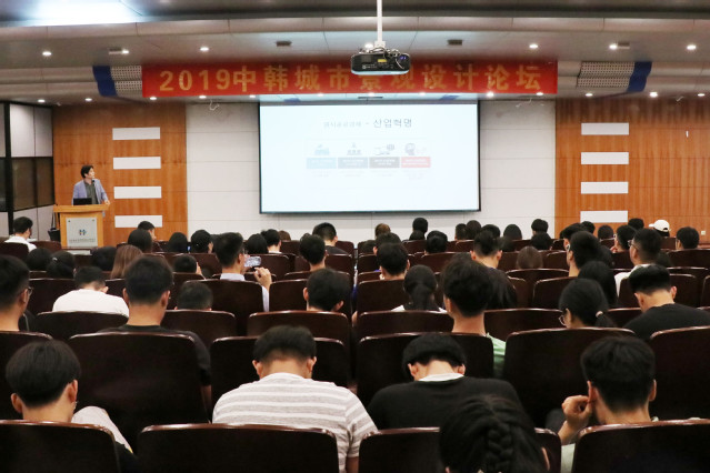 24日下午,艺术学院在学术报告厅举办了“中韩城市景观设计论坛”,进行了深度学术交流,新罗大学教授金基洙做了主旨发言。