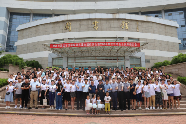本网讯(旅游与酒店管理学院 李涛)6月29日,旅游与酒店管理学院举办第五届全国校友会暨2009届校友毕业十周年研讨会,学院副院长刁洪斌、招生就业办公室副主任张承业、旅游与酒店管理学院党总支副书记徐莉和2009届辅导员老师等参加会议。来自全国20多个省市自治区的150余名校友十年聚首,感恩母校,参与人数创历届之最。