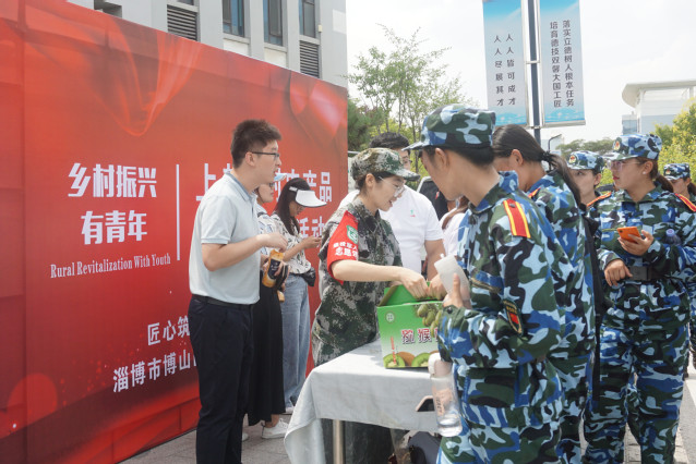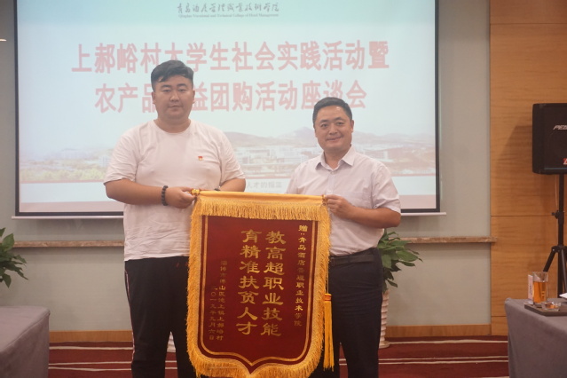 本网讯(烹饪学院 庞阳)近日,一场别开生面的“上郝峪村农产品公益团购活动”在我院校园内举办,此项由学院“匠心筑梦”暑期社会实践服务队发起的扶贫公益活动受到师生大力支持,为淄博市博山区上郝峪村销售滞销猕猴桃千余公斤,销售额达两万余元,上郝峪村民为学院送来了“教高超职业技能,育精准扶贫人才”的锦旗。