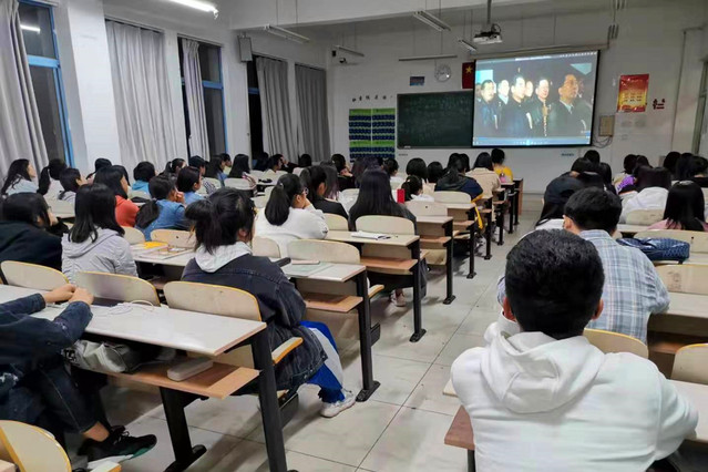 本网讯(工商管理学院 谢甜甜)为大力弘扬爱国主义精神,贯彻《新时代爱国主义教育实施纲要》,工商管理学院学生党支部创新工作方法,利用晚自习时间开展爱党爱国电影展播活动,10月9日晚《建国大业》在工商管理学院楼所有自习教室开播,电影展播活动将持续到10月底。