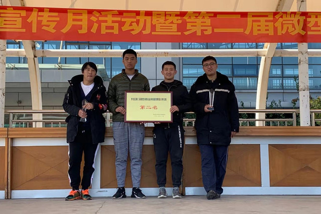 本网讯(安全保卫处 刘晓明)近日,李沧区2019年第二届微型消防站业务技能竞赛在我院举行,学院安全保卫处赵阳、刘山、李宗峰三位老师和学院退役士兵消防队代表商轲帅通过激烈比拼,从190支参赛队伍中脱颖而出,荣获团体第二名的好成绩。