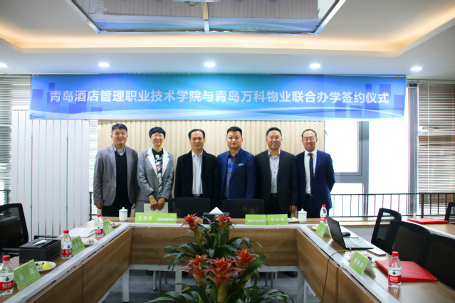 本网讯(酒店工程学院 薛陆)11月12日,学院与青岛万科物业服务有限公司等三家企业签订校企合作招生教学点签约仪式,青岛万科物业服务有限公司总经理王仕伟、学院副院长王建宝出席仪式并签订合作协议。