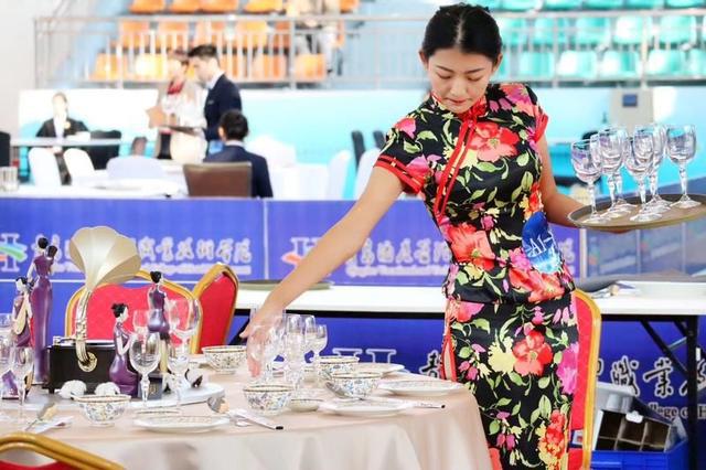 比赛现场,中餐宴会摆台、西餐宴会摆台、中式铺床、厨艺、面点五大赛项颇具看点,选手们沉着冷静、裁判们严谨认真、现场工作人员细致周到。整个比赛期间,赛事环节衔接流畅,比赛首次采取现场直播的方式,各路网络媒体争相报道。我院作为受邀参赛的岛城中高职院校之一,勇夺中餐宴会摆台、西餐宴会摆台、中式铺床、厨艺、面点五个赛项的一等奖第一名好成绩。选手们用纯熟的技艺与精益求精的态度传承了大国工匠精神,学院用周密严谨与细致周到的服务赢得了与会领导、专家与参赛队伍的好评。