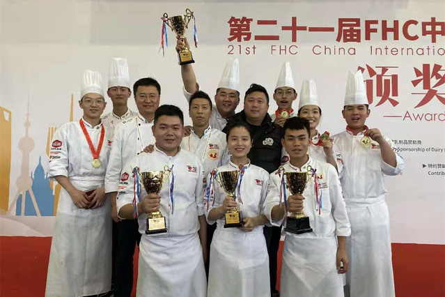 本网讯(烹饪学院 江云涛)11月12日-11月14日,2019年FHC中国国际烹饪艺术比赛在上海举行,由我院学子于广川等六名选手组成的中国国家青年厨师队与11支来自不同国家和地区的青年厨师队同台竞技,最终获得2019FHC中国国际烹饪艺术比赛国际青年厨师挑战赛项目团体金牌。