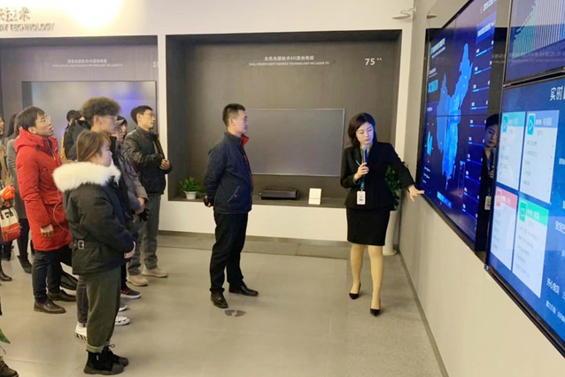 全体人员观看了海信的历史沿革宣传片,了解到海信集团的前身为“青岛无线电二厂”,海信始终坚持技术立企、稳健经营的发展战略,其平板电视连续十三年高居中国平板市场销量和市场占有率第一,全球位居第三,光模块产业规模居全球前五。随后,师生们在引导员的带领下,细致参观了海信研发中心创新馆,从智能厨房、智能家居、智能医疗、智能办公、处理芯片等方面,系统了解了海信的产业布局和最新科技产品,不仅加深了对海信集团的了解,同时也对新中国成立以来特别是改革开放四十多年来我国的科技发展有了更深的认识。