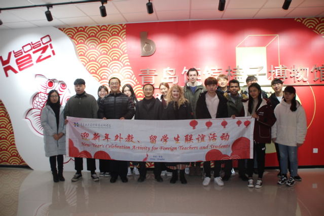 全体外籍师生们首先来到学院刚刚开馆的“青岛饽饽榼子博物馆”进行参观。在这座省内唯一的关于面食模具的专业博物馆里,外籍师生们被中国传统民俗文化的博大精深所吸引,对“工匠精神”表示钦佩,并不断询问着关于饽饽榼子的历史和传承。