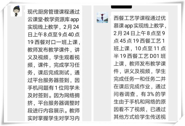 学院高度重视线上教学工作,强化以爱国主义教育为主要内容的思想引导,按照“标准不降低、学习不停顿、研究不中断”原则,完善网上教育教学平台建设,健全在线教学资源审核机制,制定系统高效的在线教学方案。教务处、教育信息中心等相关职能部门做好协调保障,各二级学院和老师精心筹划,采用清华在线、雨课堂、智慧树、慕课等教学平台,通过视频讲授、语音(PPT)直播、线上自学+师生讨论答疑、学生上传作业等方式开展在线授课。