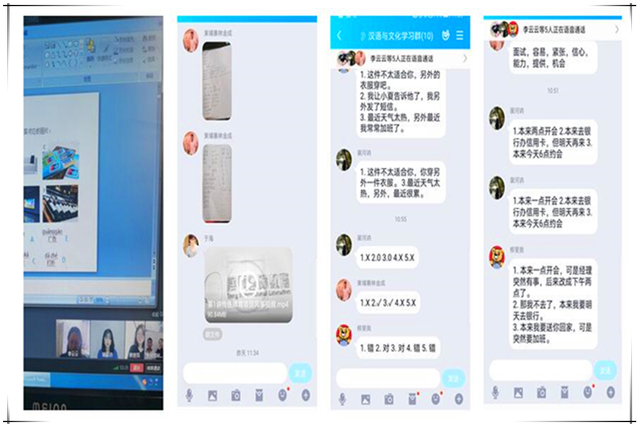 学期伊始,在国际合作与交流处、教务处和基础部的指导与帮助下,留学生教学团队踊跃参加在线教学网络培训,积极探讨教学平台的选择,充分调研了留学生们的境外网络学习条件,协调帮助学生解决地域、时差、网络技术等问题,最终建立起“网络课程资源+ QQ直播+ 微信群+课前课后作业”的授课模式。