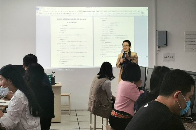 受新冠肺炎疫情影响,本年度我院首次采用网上测试的方式进行单独招生和综合评价招生考试,时间紧、任务重、难点多。培训会上,与会老师分别就考试系统操作、人脸识别与处理、考试应急情况处理、监考流程与要求、考场纪律等考试细节问题进行交流。