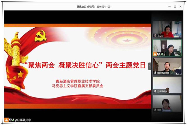 本网讯(马克思主义学院 宋洋)近日,马克思主义学院直属党支部委员会以线上网络会议的形式组织了“聚焦两会,凝聚决胜信心”的主题党日活动,深入贯彻全国两会精神,增强党员的思想政治理论素养,不断激发理论学习内在动力。