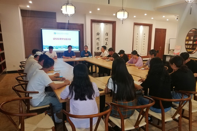 本网讯(教务处 王翔)6月16日下午,教务处在传统文化书屋组织召开复学返校学生代表座谈会, 听取同学们对关心的教学、考核的意见建议,对下一阶段教务工作做进一步安排。