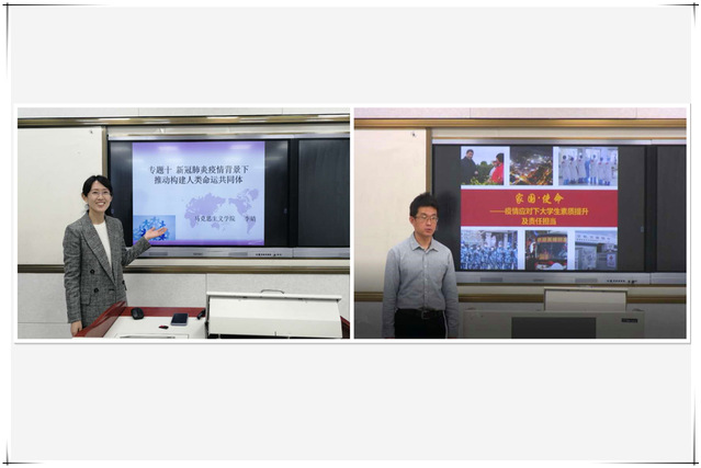 5月底,马克思主义学院选派李婧、陈焕文两名青年教师,专门录制了“新冠肺炎疫情背景下推动构建人类命运共同体”和“家园·使命——疫情应对下大学生素质提升及责任担当”两个教学专题,学习参与率超过99%,学习成绩优秀率超50%。同学们在论坛中积极发言,纷纷表示:我国在抗击疫情中体现出的中国力量、中国智慧、中国担当,令世界卫生组织、越来越多的国家、政党和国际组织给予高度赞赏,并提供了大量的支持与援助。疫情面前每个人都不是旁观者,要听从指挥,响应号召,从自身做起,从身边做起,彰显新时代青年人的责任与担当。