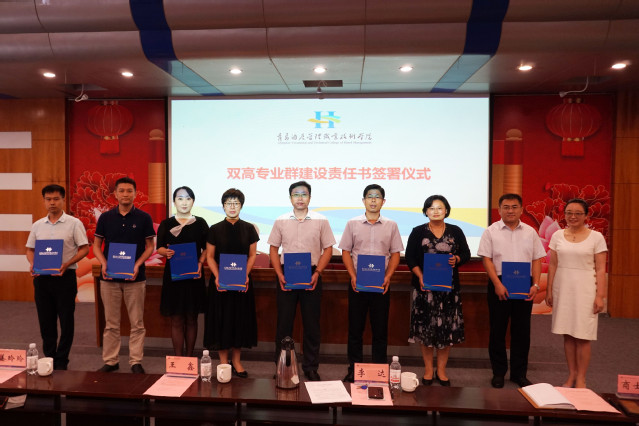在“双高计划”建设推进会上,李达与党委副书记王鑫签订了《“双高计划”建设任务责任书》。王鑫宣布成立中国特色高水平专业群领导小组和项目办公室、公布《 “双高计划”实施管理办法》、为子项目负责人颁发委任状。教务处处长唐文君以《新平台、新内涵、新模式》为题,汇报了学院“双高计划”建设阶段成果。会议总结了“双高计划”申报工作以及近段时间以来的建设情况,明确了“双高计划”建设工作任务,调动了项目组成员的积极性,细化分解任务目标,层层压实责任,为抓好工作落实,不折不扣、保质保量的完成建设任务打下坚实基础。
