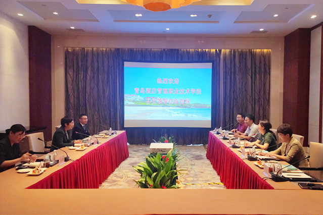 王鑫回顾了近年来学院与海景酒店的合作,对海景管理模式和亲情化服务给予高度赞扬,希望学院在“双高计划”建设中能与海景花园大酒店共同成立产业学院、共同开发酒店业1+X证书、共同启动职业教育教师流动站项目,不断深度合作层次,探索多元合作模式。周泉红介绍了酒店近年来取得的成绩,对我院多年来大力支持表示衷心感谢,希望能以组建产业学院为抓手,积极参与到学院的“双高计划”建设中,联合培养专业技能型人才,开启校企深度合作的新篇章。酒店管理学院院长王昌玉对产业学院和各类合作项目的具体模式作了详细阐述。