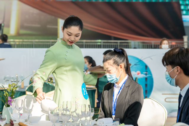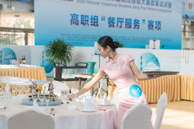 本网讯 (党委宣传统战部)11月25日,2020年全国职业院校技能大赛改革试点赛高职组“餐厅服务”赛项在学院体育馆精彩上演、秩序井然。大赛现场,来自全国各地的选手们以饱满的热情、动人的微笑,举手投足间尽显职业素养,一颦一笑里蕴含职业态度。