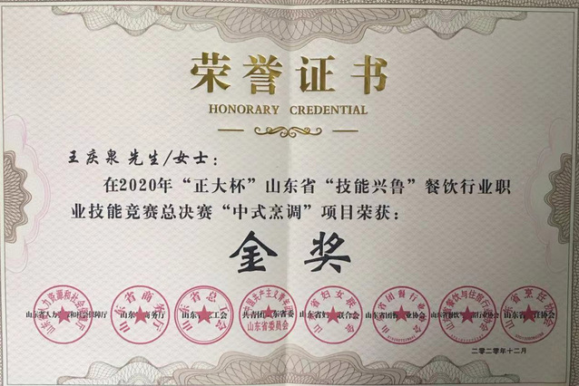 本网讯(烹饪学院 李军)近日,2020年“正大杯”山东省“技能兴鲁”餐饮行业职业技能大赛总决赛成绩公布,学院教师任传生、王庆泉两位老师获得“中式烹调”金奖。