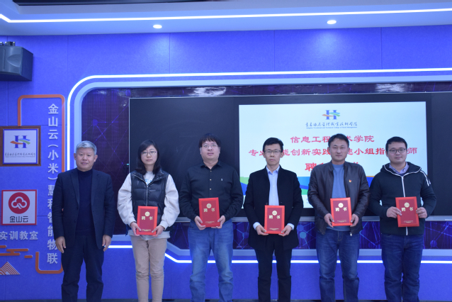学院党委书记李达为信息工程技术学院12位兴趣小组指导教师颁发了聘书并作总结讲话。讲话中,李达对信息工程技术学院立足当前、自立自强,面对新专业挑战和专业数字化转型迎难而上表示了肯定,对技能大赛获奖选手表示祝贺。他指出,当下人工智能、大数据、物联网、信息安全等相关专业发展日新月异,专业技能创新实践兴趣小组的建立,有效完善了大赛参与机制,做到了未雨绸缪、从容应对。同时,要积极搭建赋能师资发展平台,紧跟学科前沿,加快专业变革,推进师资队伍转型,为推动“双高计划”建设插上信息化的翅膀。