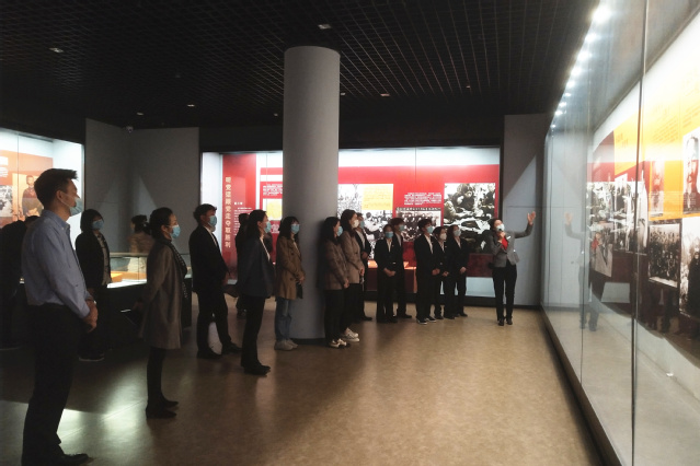 本网讯(艺术学院 于友鹏)5月13日,艺术学院党总支联合青岛市博物馆开展了“博物馆里的党史课”。艺术学院师生党员、入党积极分子、团员代表走进青岛市博物馆,上了一堂沉浸式、体验式的特色党史学习教育课。