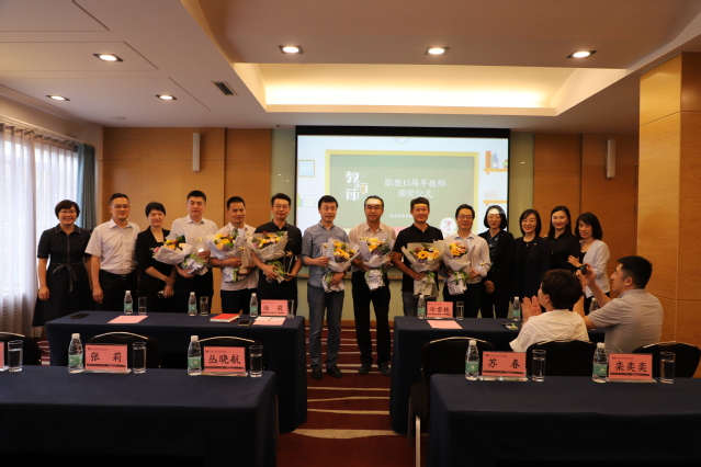 酒店管理学院党总支为从教15年的教师颁发了纪念牌,表彰和传承他们情系学院发展、倾力学院发展的精神;援疆教师张朋分享了在喀什职业学院从教的经历。