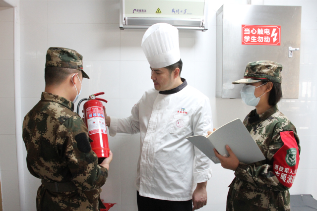 党支部牢固树立“安全至上,生命至上”工作理念,组织退役军人大学生发挥军旅工作经验,曾经的武警消防战士主动承担起烹饪实训室和宿舍安全隐患排查的任务,固定时间、细致检查、全面排查,推进学生安全自查工作常态化、科学化。