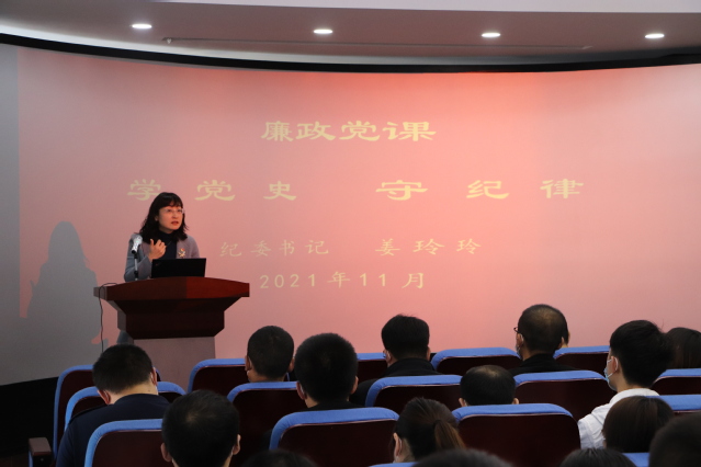 本网讯(学生工作处 朱龙)11月12日上午,学院党委委员、纪委书记姜玲玲以《学党史,守纪律》为题,为学院学团干部讲授了一堂生动的廉政党课。