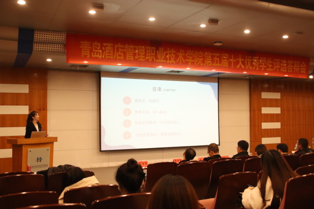 答辩会由候选人风采展示和现场答辩两部分组成。参加答辩的候选人经过自主申报、二级学院预审等程序脱颖而出,他们先后分享了自己在思想成长、学业成果、社会实践、创新创业、工作表现等方面的经历和收获。评委老师根据候选人的陈述,从时间管理、目标确立、兴趣培养等多角度现场提问,候选人即时作答。