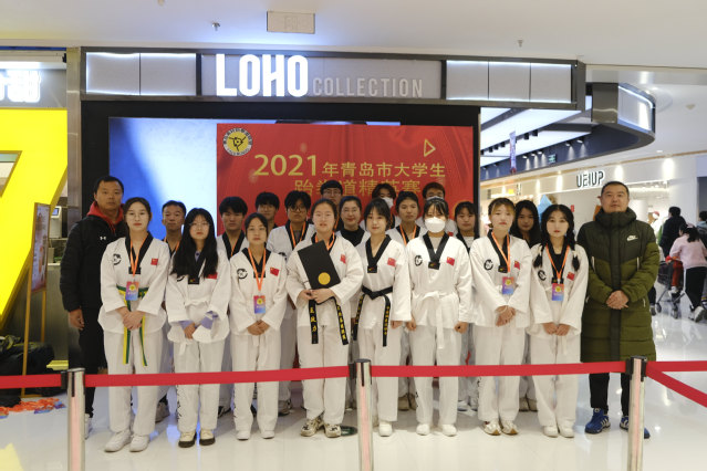 本网讯(基础教学部 王劭铭)日前,在青岛市第十三届大学生跆拳道精英赛中,学院学子喜获五个一等奖、六个二等奖、三个三等奖。其中,宋进宝、高云荣两名同学获得混双品势第一名,王俊清获得女子73kg竞技第一名,王政力、张洁、薛蓉分别在所属色带组别中获得女子个人品势第一名,学院获优秀组织奖和道德风尚奖。