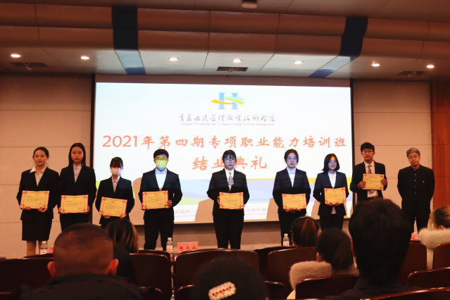 本网讯(继续教育学院)12月20日,学院2021年第四期专项职业能力培训班结业典礼在学术报告厅举行,学院副院长宫恩龙参加活动。