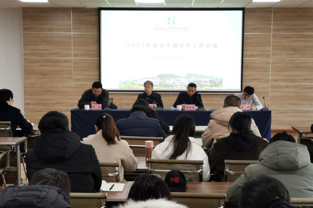本网讯(学生工作处 朱龙)2月22日上午,学院在行政楼四楼会议室召开2022年春季学期学生工作会议,就新学期各项学生工作进行安排。学院副院长宫恩龙参加会议。