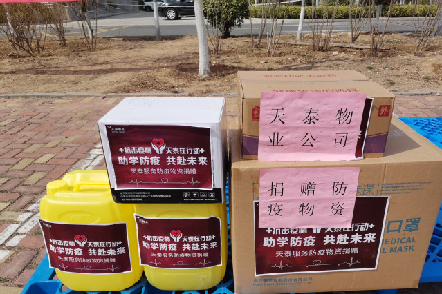 校企携手、同心战“疫”。3月24日,青岛天泰物业服务集团有限公司为学校捐赠了4000只口罩、30瓶洗手凝胶、1000只医用手套,捐赠物资价值3万余元。该公司作为酒店工程学院的合作企业,多年来一直支持和关心学校的各项工作,在了解到学校的疫情防控情况后,主动联系酒店工程学院表达捐赠意向,彰显了企业高度的社会责任感。