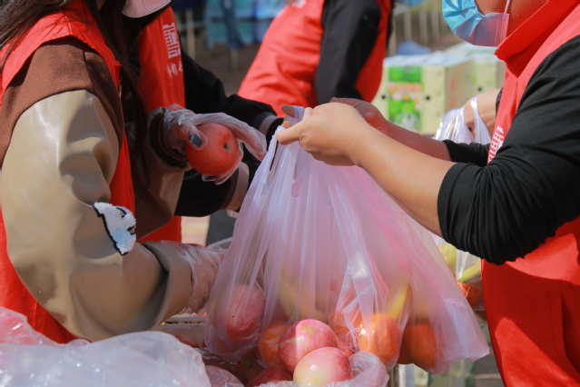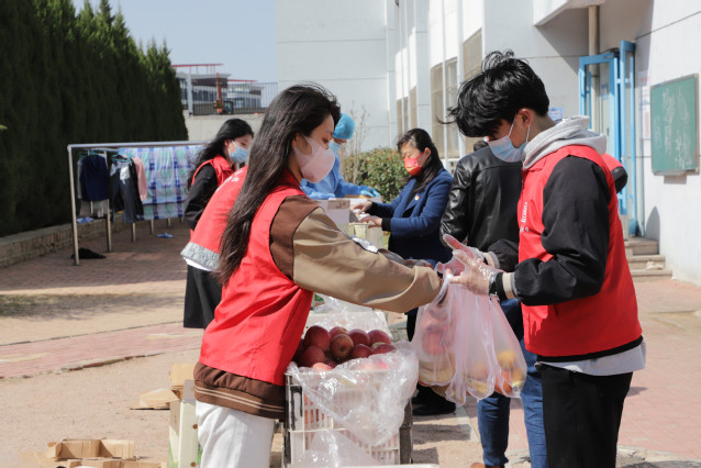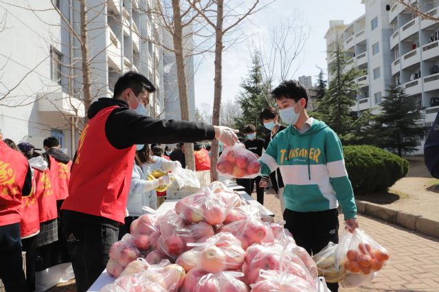 本网讯(党委宣传统战部 总务处)3月27日,西餐厅二楼青岛中快餐饮服务有限公司为在校师生免费派发了“水果大礼包”,1100多箱,5万斤。苹果、水晶梨、沃柑、香蕉4种水果,每种2个,共8个。丰富的品类让师生们切身感受到了来自学校大家庭的关爱和温暖。