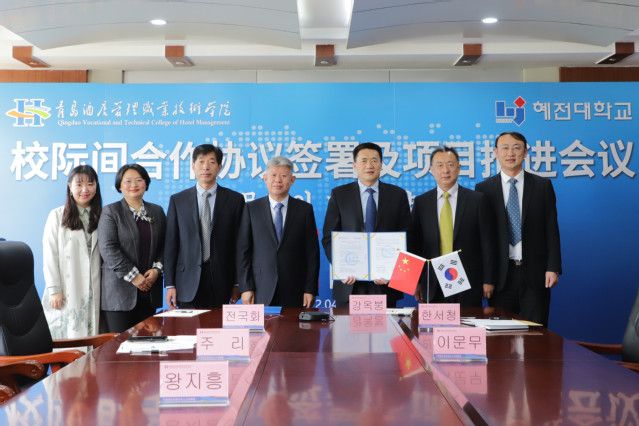 随后,李惠淑、姜玉鹏代表两校签署了第三个五年合作协议,并就2022年彗田大学中餐专业学期制来华、韩餐专业交流等项目进行深入商讨。双方表示将继续深化中餐和韩餐的技艺交流,践行两校共促共享的合作理念,为两校学生提供多样化的学习支撑,在互学互鉴、共同发展的基础上,不断把两校合作推向新的前进,力争成为中韩两国职业教育合作交流的典范。