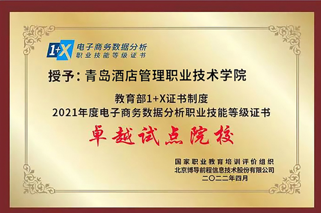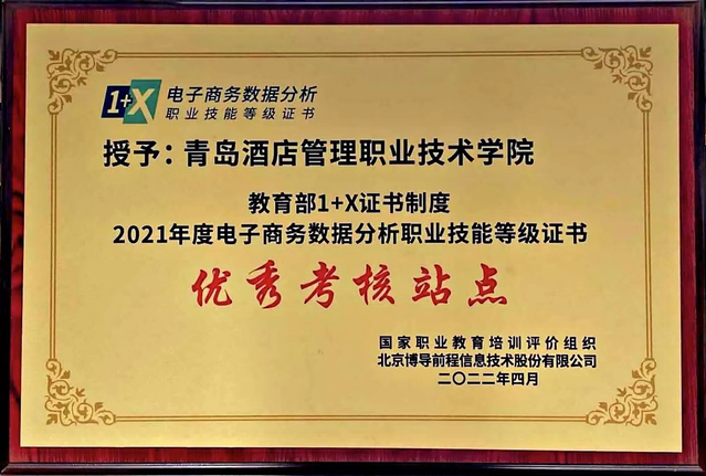 本网讯(工商管理学院 徐豪杰)近日,由教育部认定的国家职业教育培训评价组织——北京博导前程信息技术股份有限公司主办的电子商务数据分析试点工作表彰会暨岗课赛证融通育人模式线上研讨会召开,全国800余所试点院校参会。会上,taptap荣获2021年度“1+X”电子商务数据分析职业技能等级证书“卓越试点院校”和“优秀考核站点”两项荣誉。
