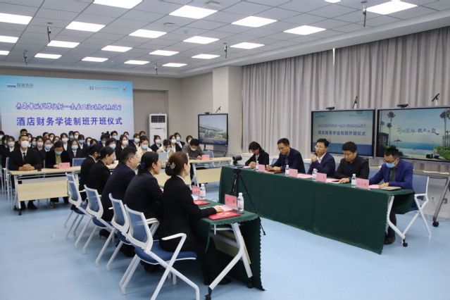 张宗国表示,酒店财务学徒制班是学校与蓝海集团深度合作的崭新开始,希望校企双方紧密合作,将酒店财务学徒制班办出质量、干出特色、做出成效,打造成具有示范引领作用的校企合作品牌和现代学徒制典范。鲁晓静对即将加入学徒制班的同学们表示热烈欢迎,希望同学们珍惜学习机会,锤炼专业本领,快速成长、成人、成才,不辜负母校的殷切期望。