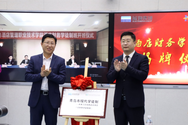 仪式上,张宗国与青岛蓝海大饭店(李沧)副总经理张小保共同为“酒店财务学徒制班”揭牌。校企双方共同宣布企业师傅名单及师徒结对名单并举行拜师仪式,学徒向企业师傅行拜师礼,企业师傅为学徒佩戴工卡、赠送礼物。仪式结束后,青岛蓝海大饭店(崂山)财务总监郭红彩为学徒讲授开班第一课。