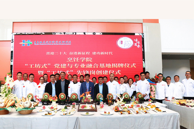 韩西清为“工坊式”党建与专业融合基地揭牌并为6位“工坊式”双带头人颁发聘书。他强调,当前学校正处在“双高计划”建设的关键时期,要推动各项工作高质量发展,就必须正确认识党建和业务的关系,破解党建与专业教学“两张皮”问题。“工坊式”党建与专业融合基地要结合烹饪学院专业特色,依托校企合作平台,构建“产学研营”一体化模式,递进式促进二者同向聚合、深度融合,打造党建融合专业的烹饪样板。